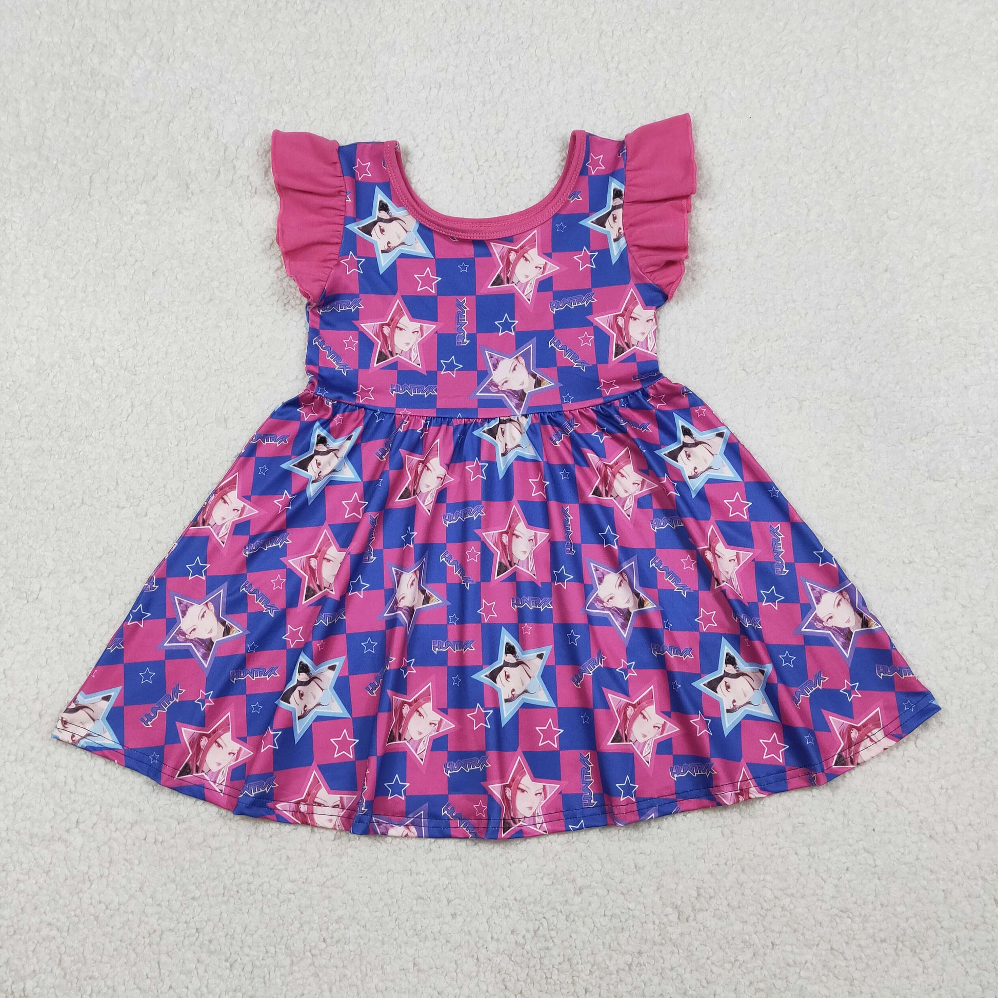 12/18m-14/16t RTS NO MOQ(In Stock ) GSD3284 Kpop Star Blue-Purple Plaid Rose Red Flutter Sleeve Dress