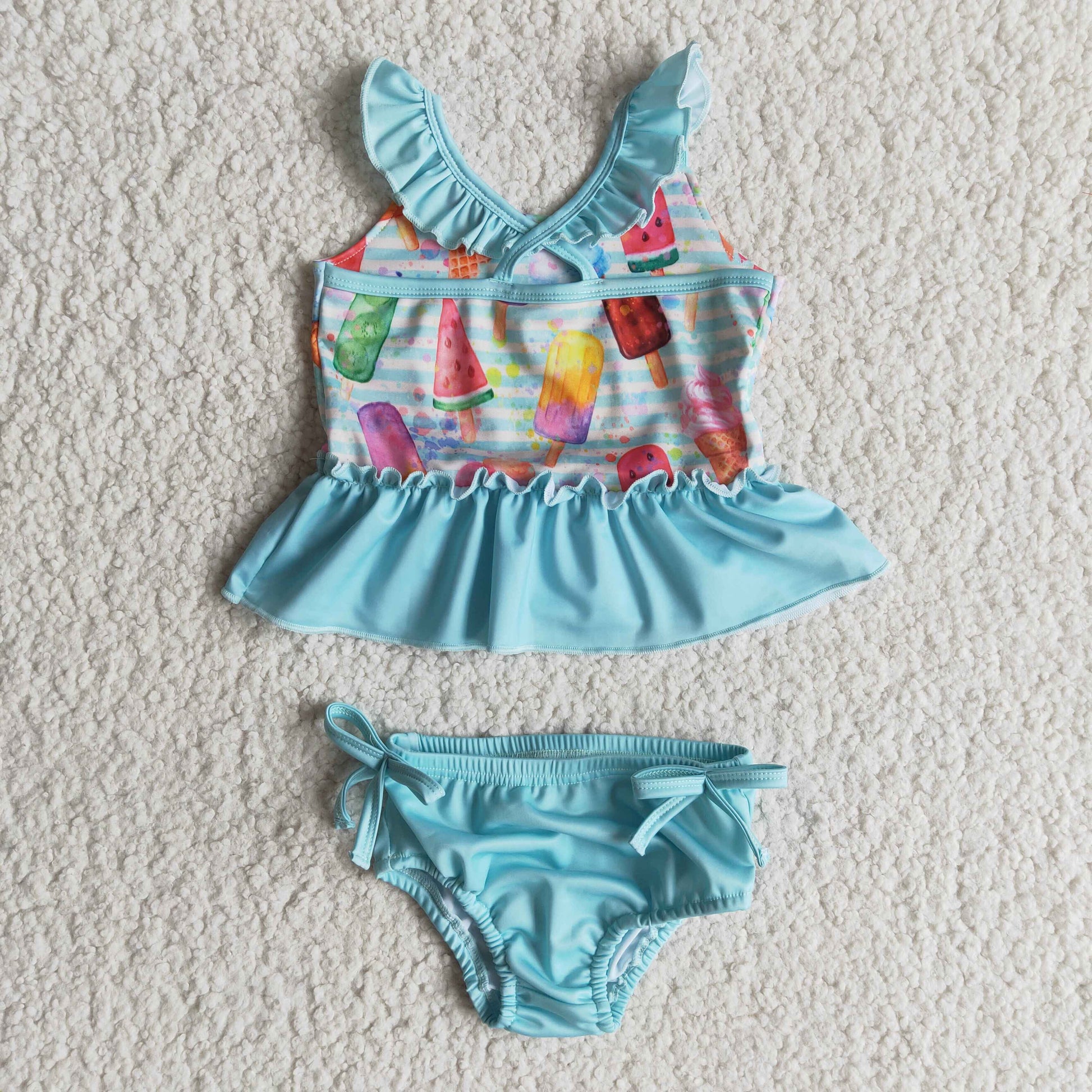 blue ice cream pattern 2 pcs swimsuit