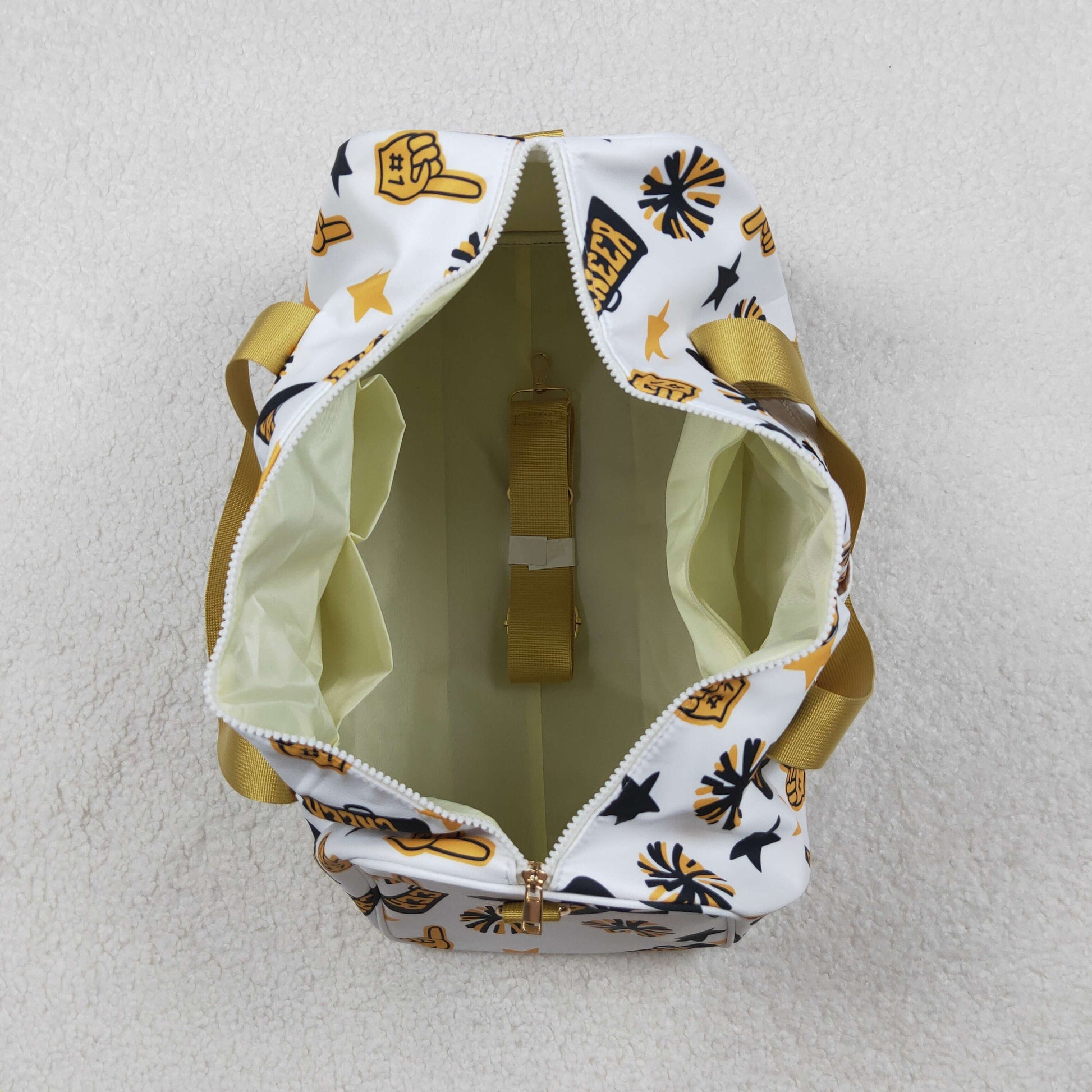 RTS NO MOQ(In Stock) BA0370 Cheer black and gold fireworks star gym bag with white