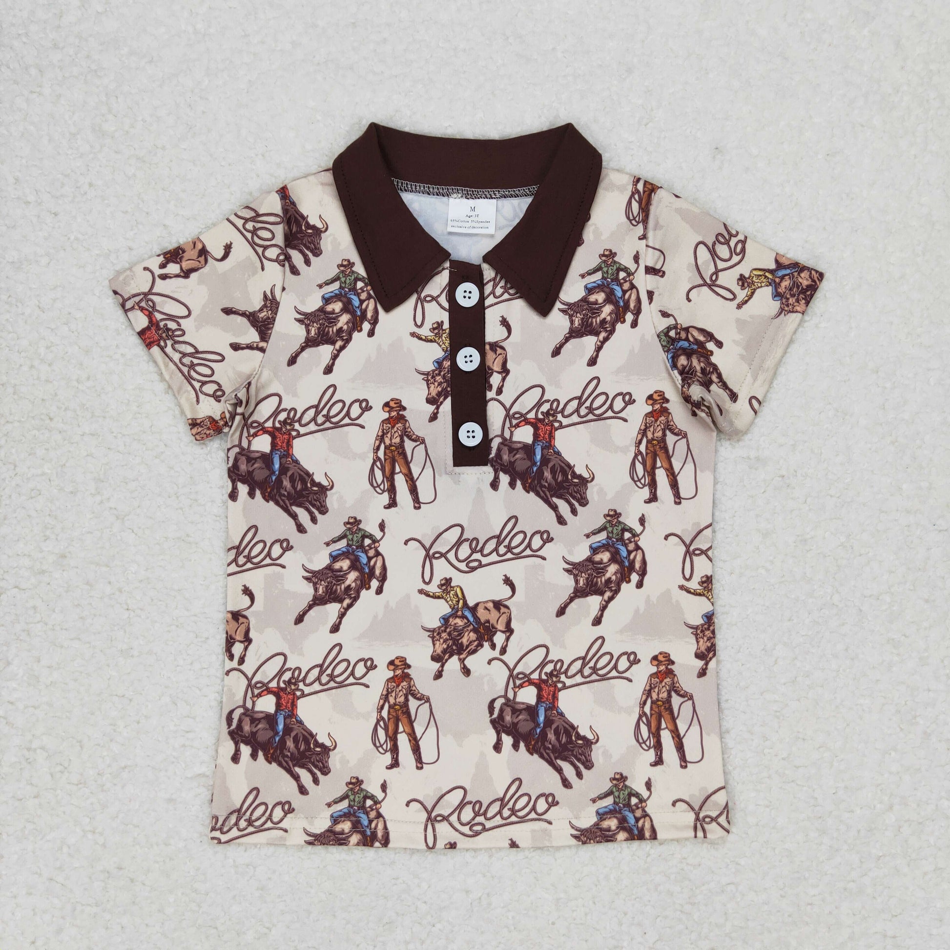 RTS NO MOQ(In Stock) BT0558 Rodeo riding brown collar short-sleeved top