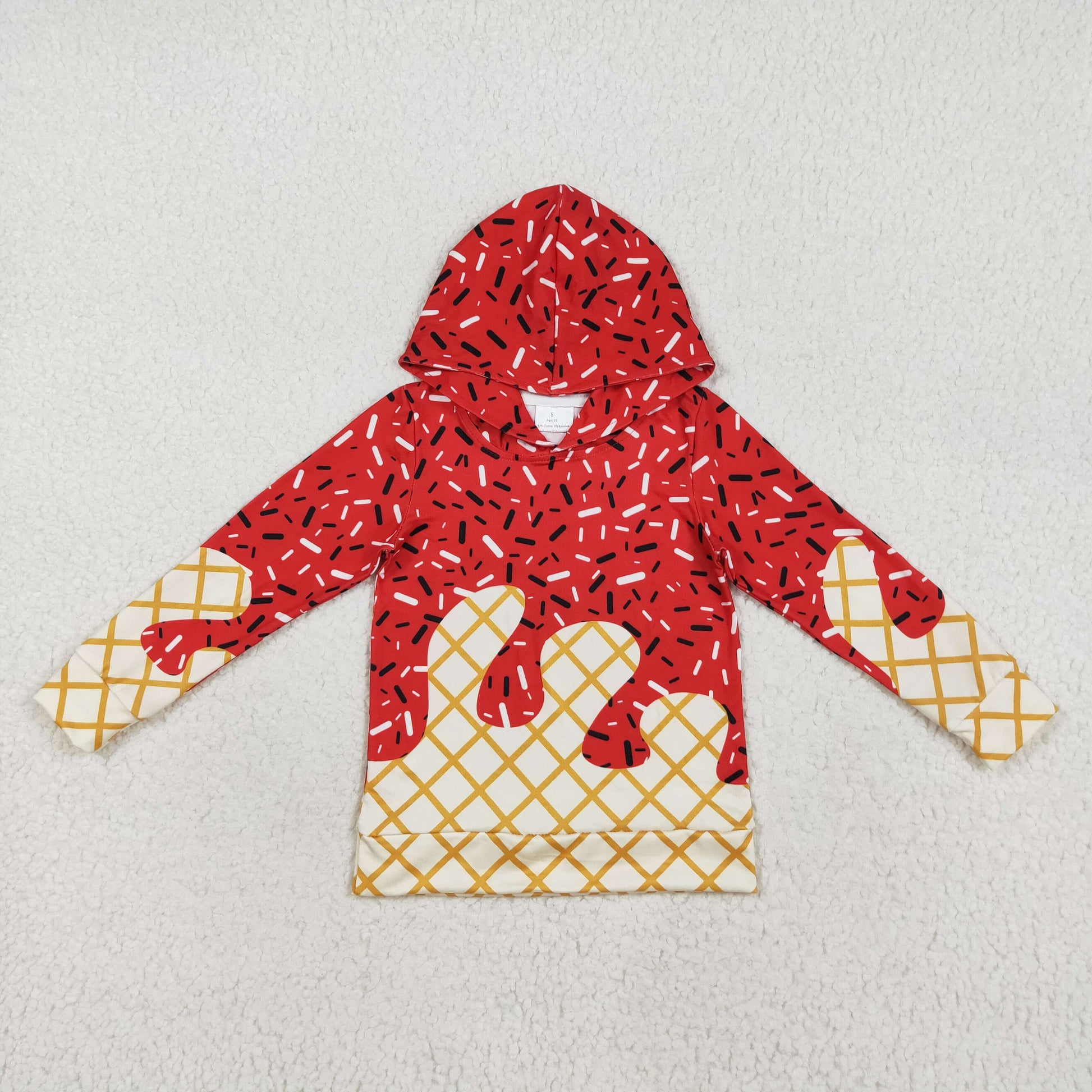 RTS NO MOQ(In Stock) BT1272 Waffle ice cream red hooded long-sleeved top