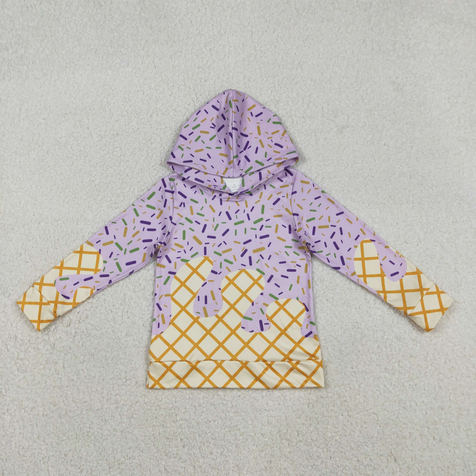 RTS NO MOQ(In Stock) Waffle Ice Cream Light Purple Hooded Long-Sleeved Top