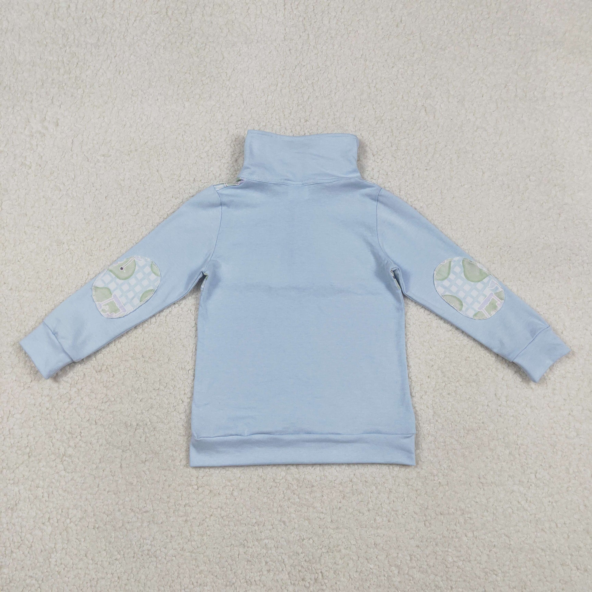 RTS NO MOQ(In Stock) BT1492 Golf Course Sightseeing Vehicle Blue Check Button-Up Long-Sleeve Top