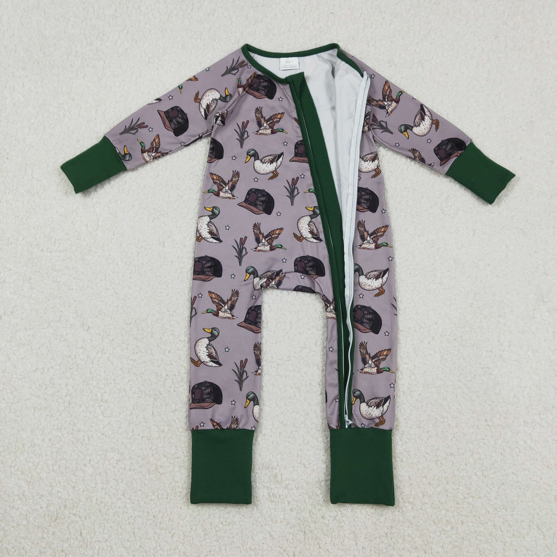 RTS NO MOQ(In Stock ) Duck Hat Gray-Green Zipper Long-Sleeve Jumpsuit