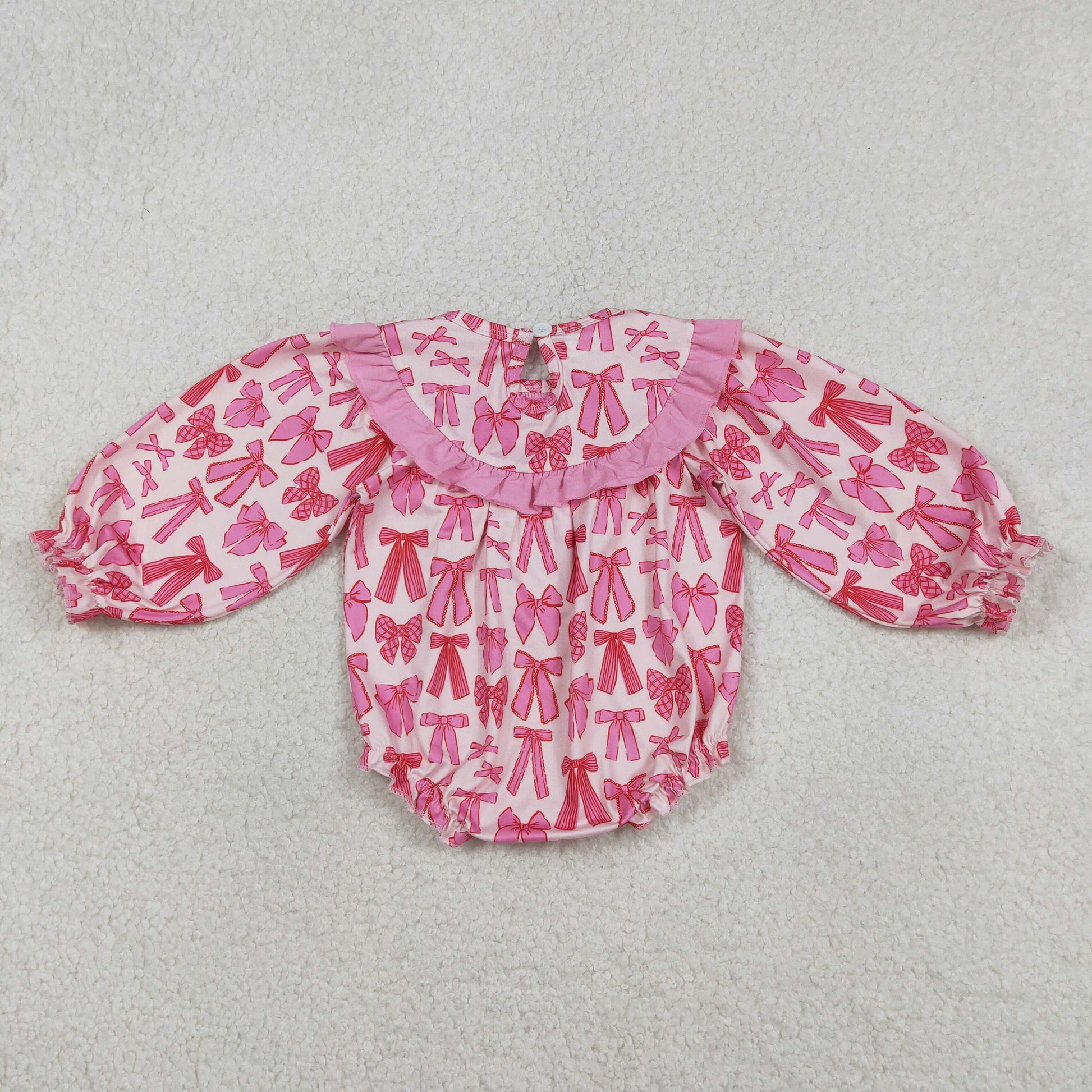 RTS NO MOQ(In Stock) Embroidered Daddy's Valentine's pink long-sleeved jumpsuit with bow pattern and lace trim