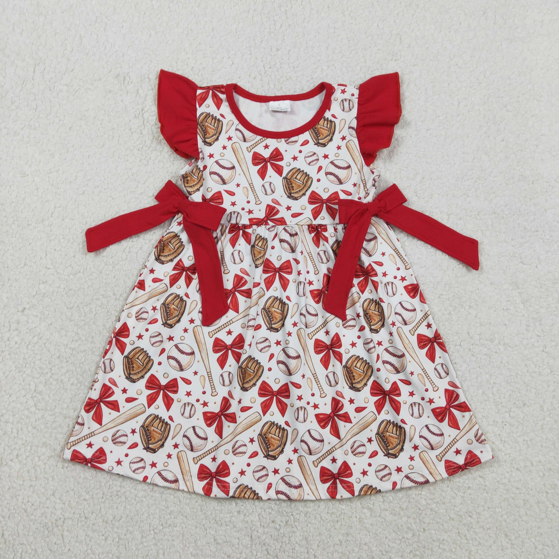 RTS NO MOQ(In Stock ) GSD3455 Red bow-patterned baseball glove, white flutter-sleeved dress