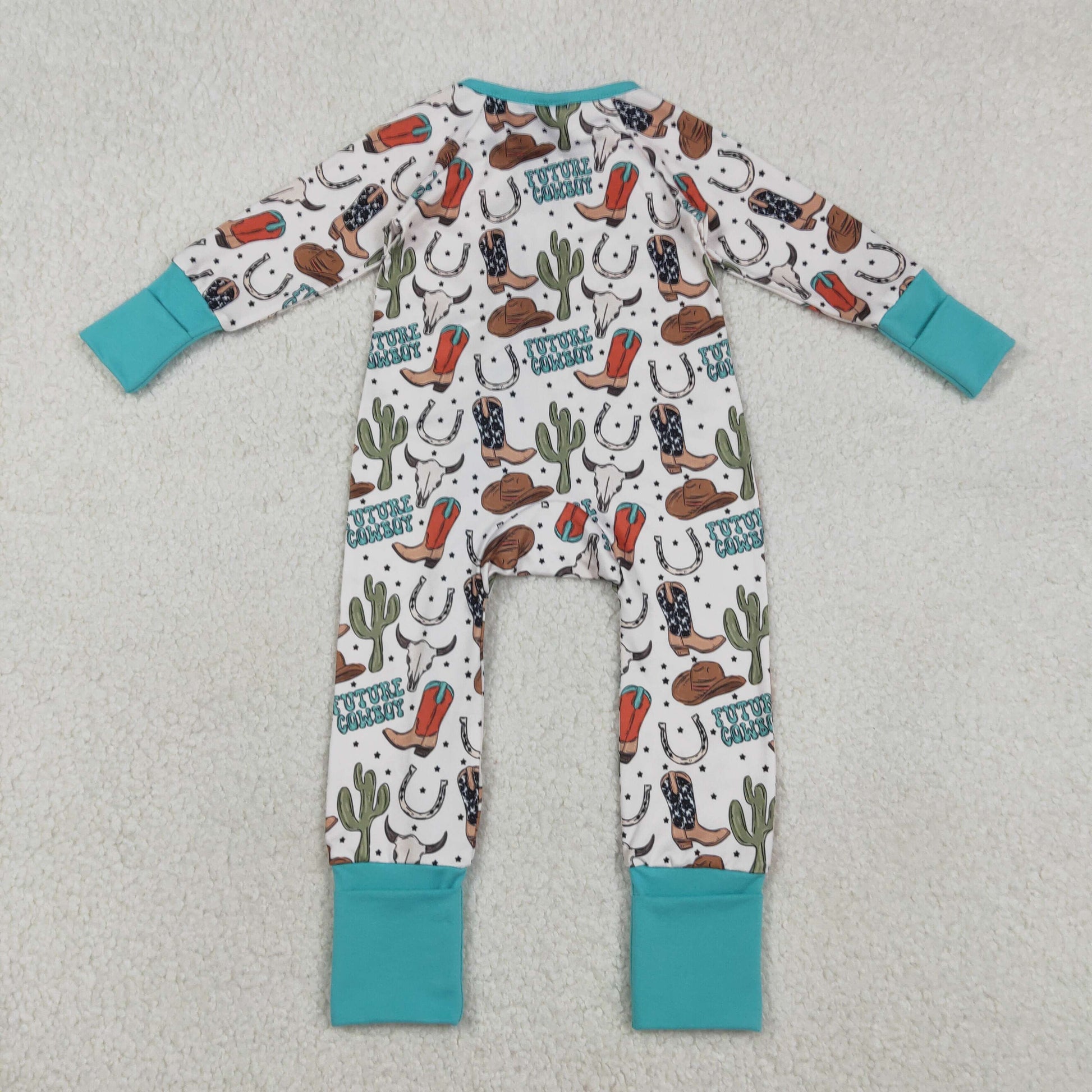 RTS NO MOQ(In Stock ) LR2944 Future Cowboy Alpine Cow Head Cactus Boots Beige Zipper Long-Sleeve Jumpsuit