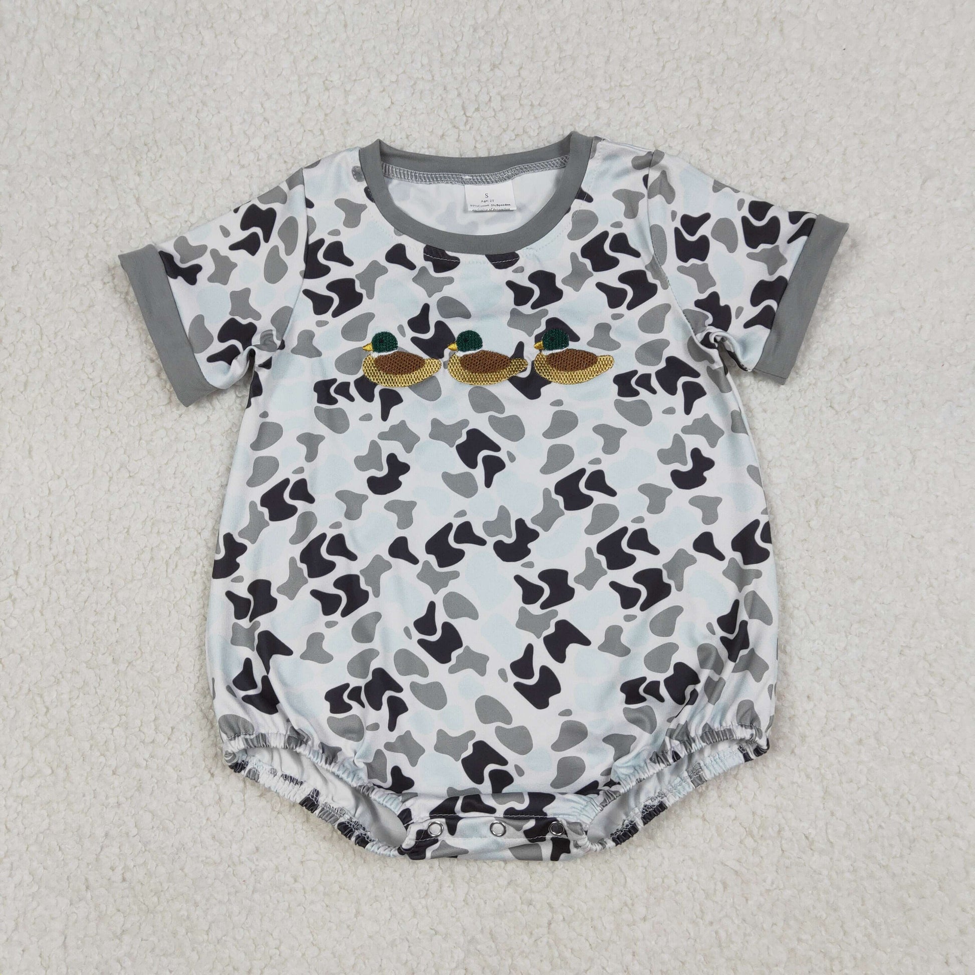 RTS NO MOQ(In Stock ) SR3571 Embroidered duck grey-green camouflage short-sleeved bodysuit