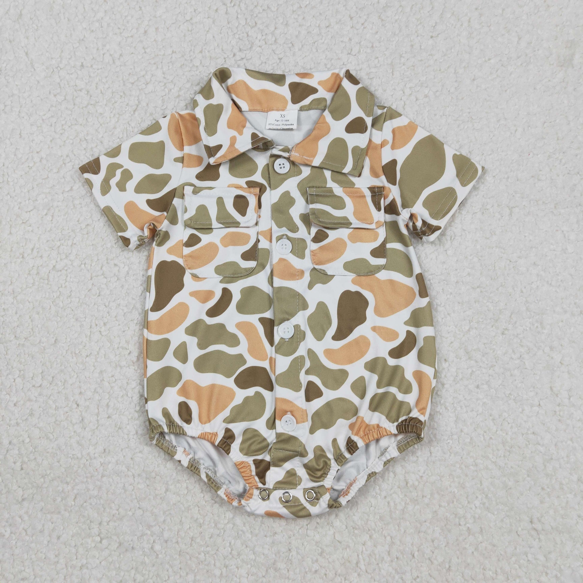 RTS NO MOQ(In Stock) SR3658 Orange-green camouflage pocket button neckline short-sleeved jumpsuit