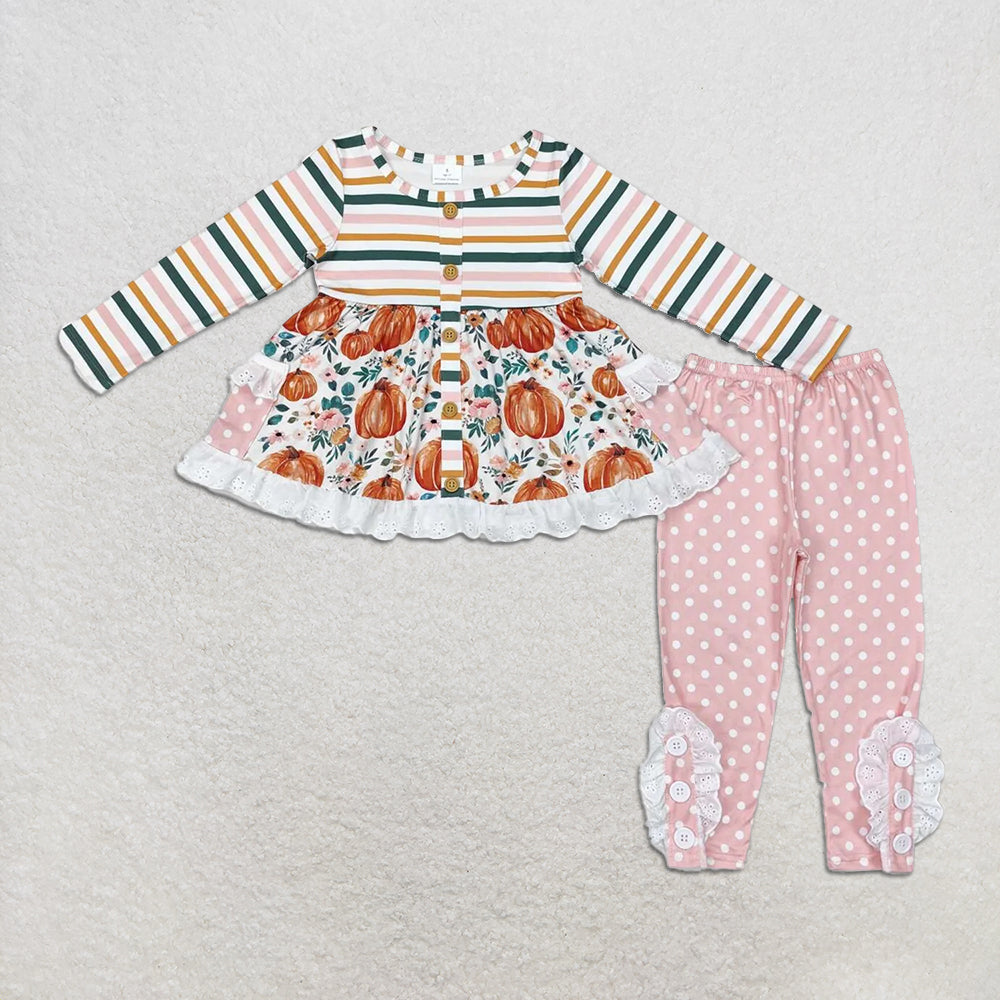 RTS NO MOQ Sibling Baby Girls embroidery pumpkin halloween Long Sleeve Pants Sets