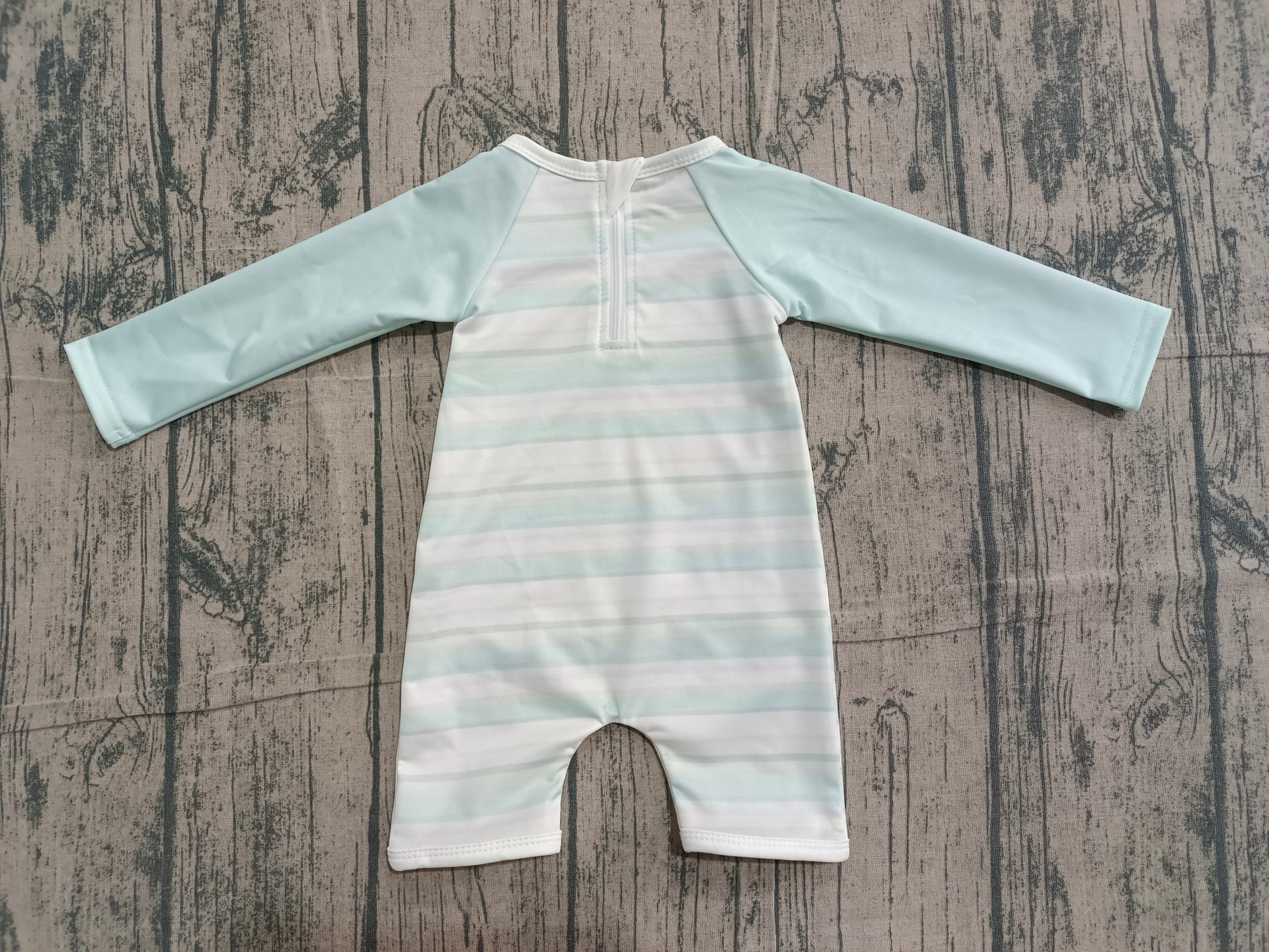 (Sample) No moq S0650 Swimsuits Baby Girls Aqua Stripe Romper Summer Lightweight Clothes for Infants
